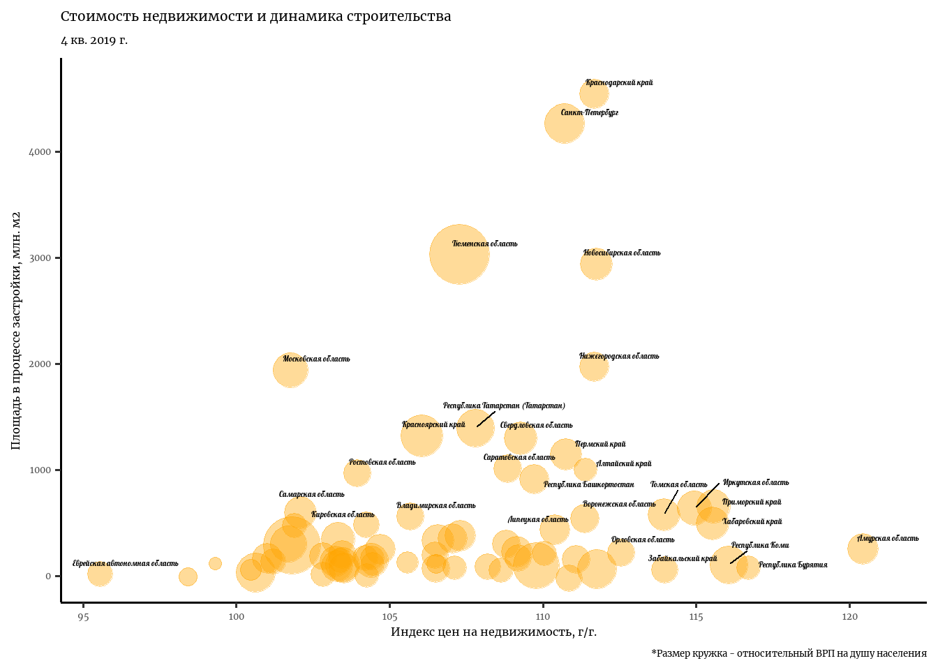 caption = '*Размер кружка - относительный ВРП на душу населения')